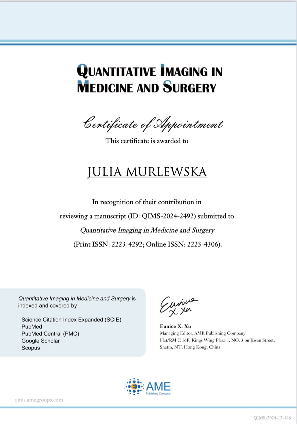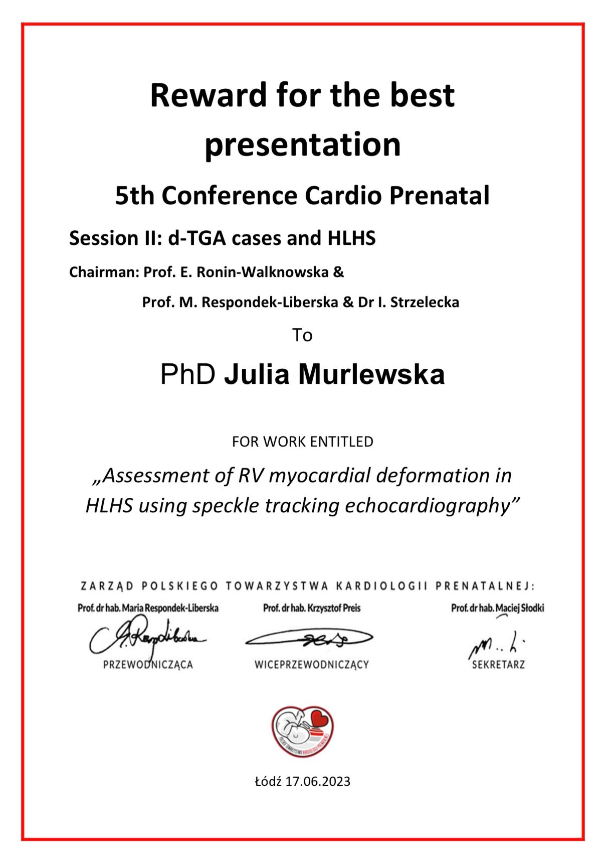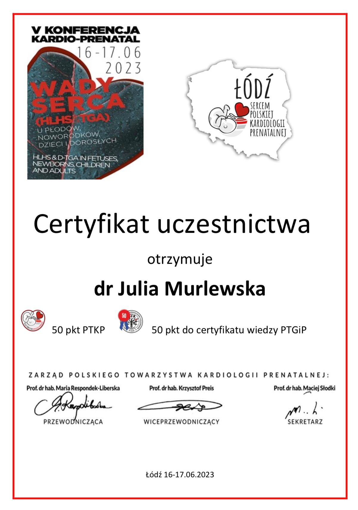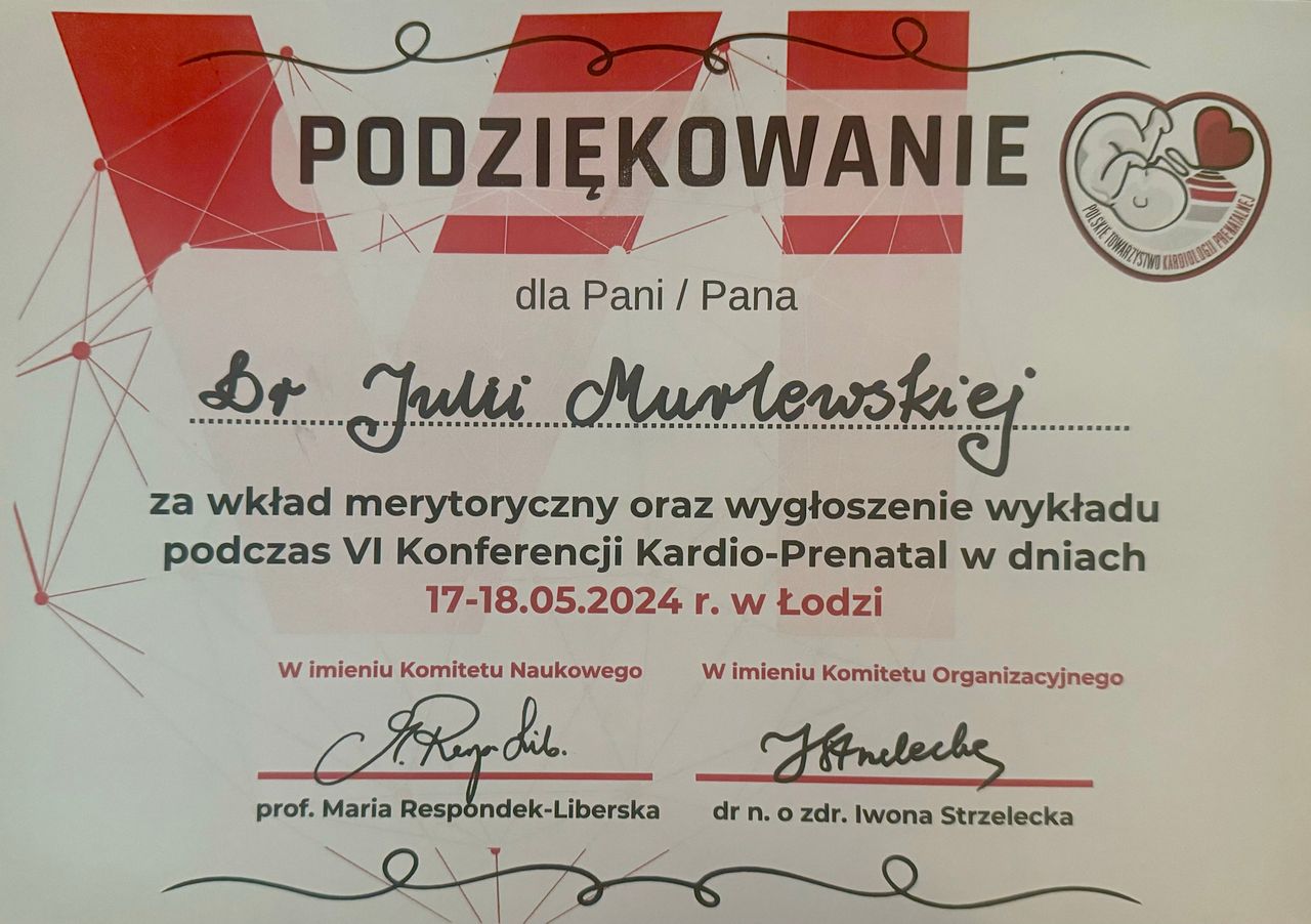 Do Pani Doktor Murlewskiej trafiłam z polecenia znajomych. Prowadziła moją drugą ciążę, która zakończyła się szczęśliwym rozwiązaniem. Po moich wcześniejszych doświadczeniach, nie wyobrażam sobie już innego lekarza prowadzącego ciążę. W końcu trafiłam na lekarza, który przeprowadza badania skrupulatnie, rzeczowo, bez pośpiechu, nie lekceważy żadnego niepokojącego sygnału. Jednocześnie przebiega to w przyjaznej i komfortowej atmosferze (a w przypadku gabinetu ginekologicznego nie jest to łatwe). Podczas każdej wizyty znalazła również czas na rozmowę, co dla ciężarnych, zwłaszcza jeśli jest to ich pierwsza ciąża, może być równie ważne jak samo badanie. W końcu ciąża to też pasmo rozterek, wątpliwości i obaw. Poza tym z Panią Doktor jest zawsze dobry kontakt, można dosłownie pisać o każdej porze dnia i nocy.